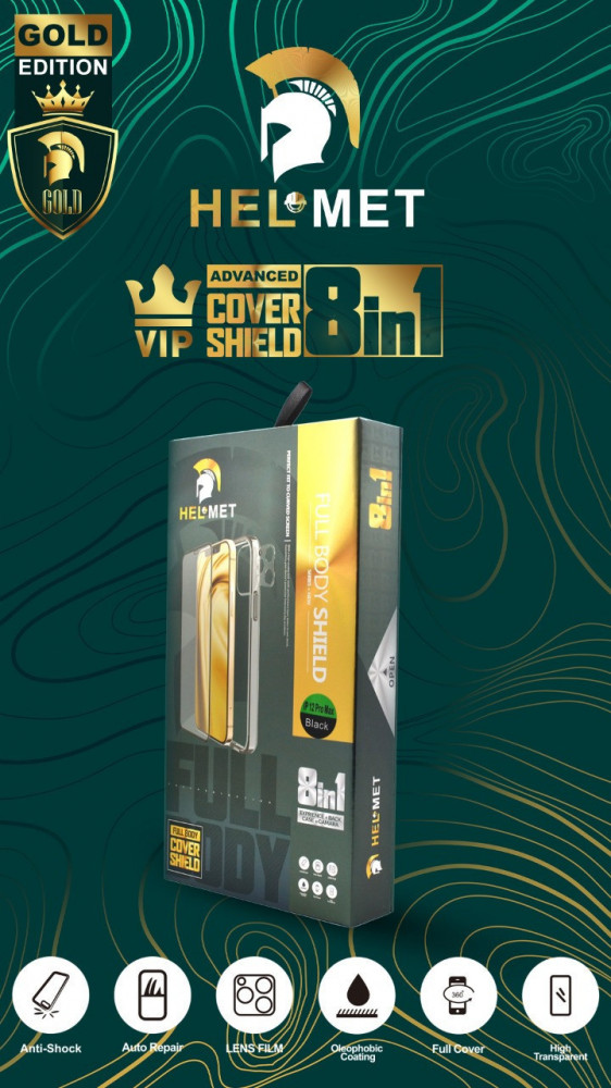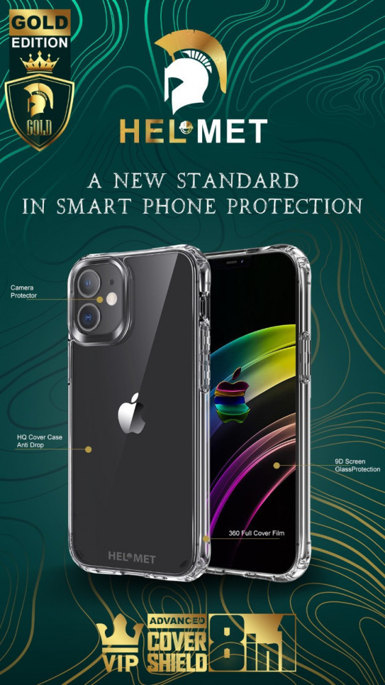بكج حماية ايفون 11 برو - حماية HELMET الاصدار الذهبي: هو حلاً شاملاً لحماية هاتفك الايفون 11 برو. يتضمن هذا البكج حماية شاشة عالية المتانة بتقنية النانو، كفر خلفي من السليكون، تغليف حراري للحماية الإضافية، وحماية عدسة الكاميرا الخلفية. يتميز بتصميمه الأنيق والفريد، مما يضيف لمسة من الجمال والأناقة إلى جهازك. هذا البكج يوفر لك الحماية الشاملة والاطمئنان لاستخدام هاتفك الثمين.